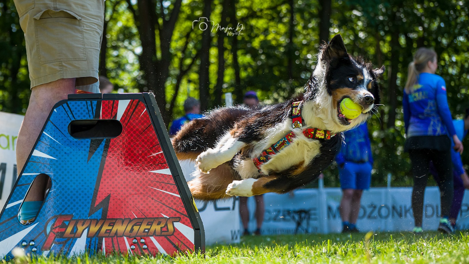 Flyball to sport, w którym na dwóch równoległych torach rywalizują ze sobą dwie psie sztafety. Wygrywa ta, która wykona bezbłędny bieg szybciej od rywali. Wszystko odbywa się z precyzyjnym pomiarem czasu i jest niezwykle widowiskowe. Flyball to dla nas nie tylko umiejętność pokonywania przeszkód na torze, aport czy wyścig, to przede wszystkim sport, który uczy pokory, współpracy człowieka z psem, a w szczególności człowieka z drugim człowiekiem. Jeśli chciałbyś poznać techniczne szczegóły – zerknij tutaj.